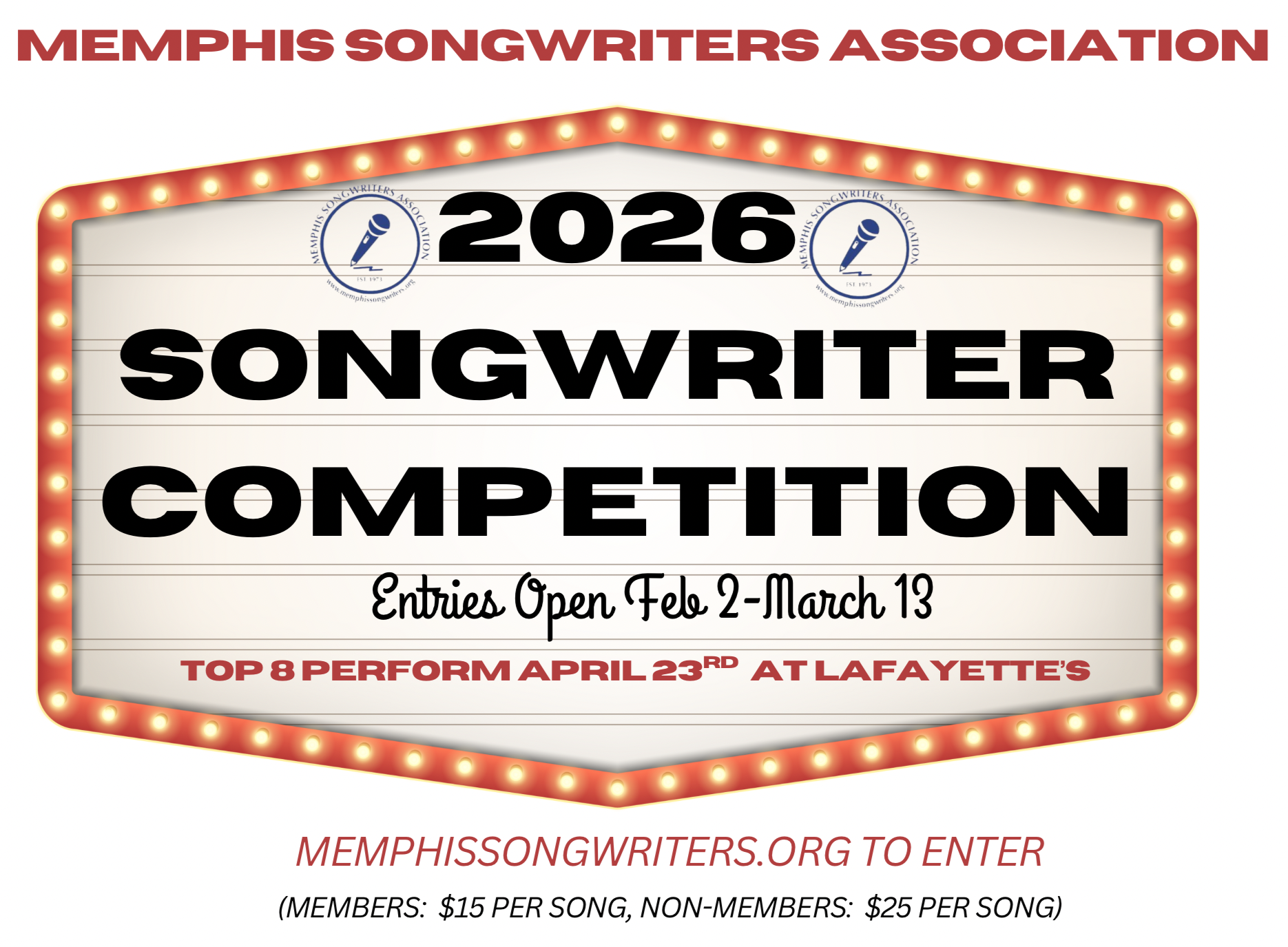 The mission of the Memphis Songwriters Association (MSA) is to create a vibrant COMMUNITY of songwriters and provide OPPORTUNITIES for them to grow - with the ultimate hope that we will transform the landscape of the music industry in Memphis, Tennessee.